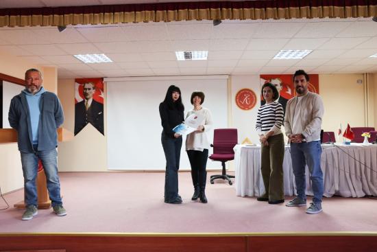 Oryantasyon programına sağladıkları katkılar dolayısıyla, Aleyna Çevirme ve Mert Ufuk Korkusuz’a Bölüm Başkanlığı tarafından teşekkür belgesi takdim edildi.